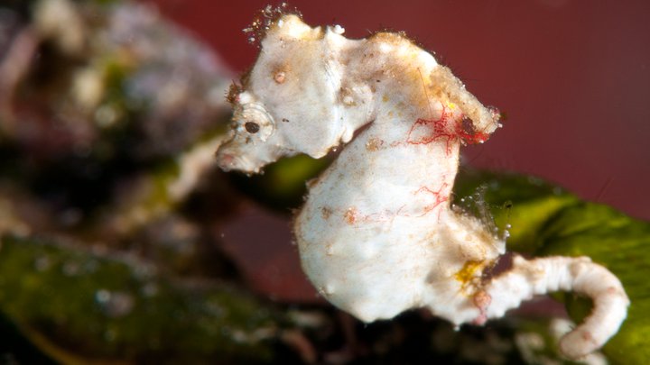 この写真には、私もとても驚きました。ピグミーシーホースの目に焦点を合わせてから、フォーカスロックし撮影したのですが、後でチェックしてみると、体全体が入っていませんでした。驚くことに、このレンズにピグミーシーホースは大きすぎたのです!撮影後、私より見る目のあるGuy とAnitaに手伝ってもらいトリミングしてみると、このような芸術的な写真に仕上がりました!