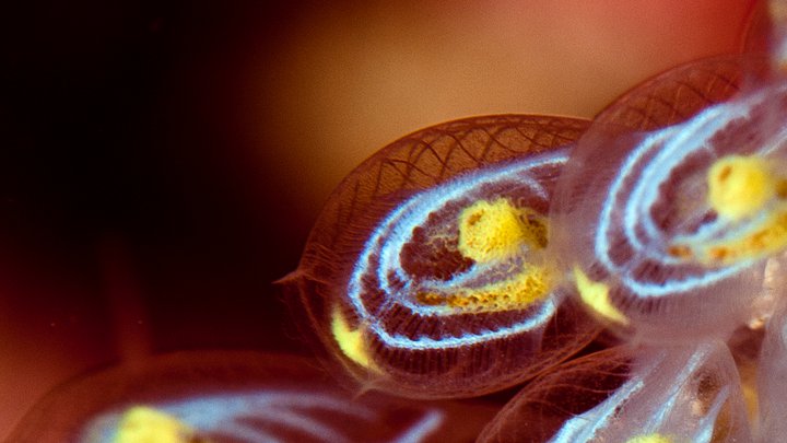 「スーパーマクロの撮影は、Fストップ32というカミソリの刃より薄い世界です。この意味は、被写体の隅々にまで完璧に焦点を合わせることができるということです。何か面白い被写体に焦点を合わせることができれば、素晴らしい写真になる可能性が高いというメリットもあります。この写真はホヤを写した写真をトリミングしたものです。たったの1288x765ピクセルですが、大きく印刷することもできると思いますが、パソコンのスクリーン上を好む人の方が多いですかね?」