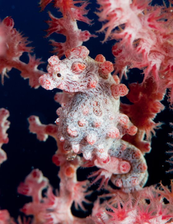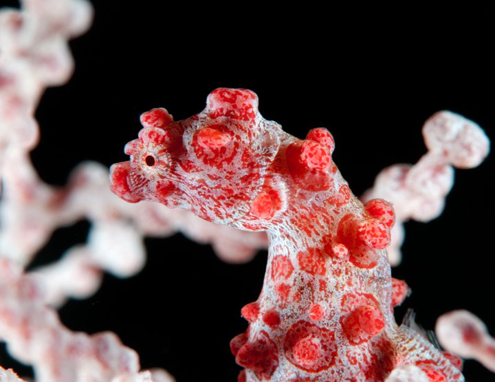 11. 最後に、海ウチワのポリプを食べて薄く青みを帯びた、赤いピグミーシーホースのスーパーマクロ・ショットです。